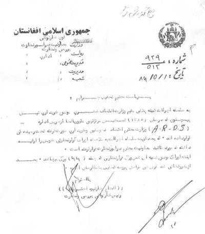 محترما: به سلسله همکاری های همیشگی انجمن با ادارات دولتی در رابطه به تحقیقات و افشای حقایق اینک در رابطه به دوسیه وحید الله شهرانی به مقام شما چنین مینگاریم.