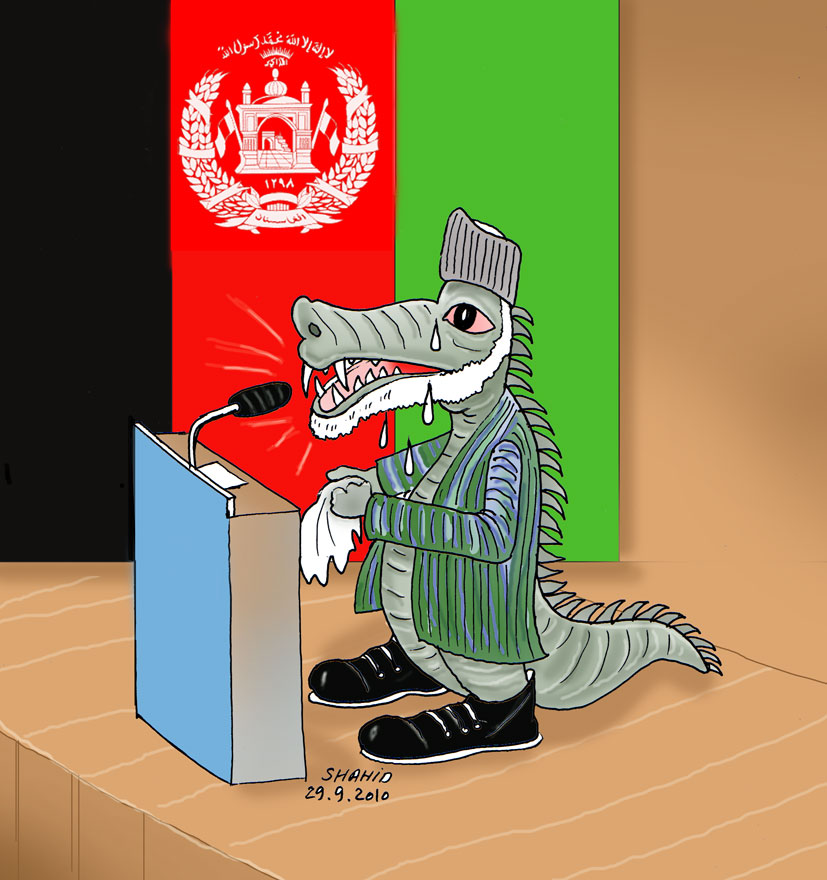 درين مملكت هرادم جور را بياور نا جور ميشود.بيجاره كرزى ميخواست خدمت كند ولى از جهار طرف بسته در زنجير است. ماجه ميدانيم كه جه ميكزرد جقدر از جهار طرف فشار است.نزد طالب عزر ميكند, بشتونهاى باكستانى را ميخواهد كه هم در دهن شان جيز را بدهد ,انها به خوردن و مكيدن خون اين خاك اموخته شده اند.نتى جه شود,بتى جه شود؟قوم خانه خراب خانه خودرا خراب ميكند تيشه به ريشه خود ميزند.بدر انسان ديوانه ميشود كه اينقدر وحشيى را ببيند.باز هم افرين به كرزى كه اينقدر تحمل هم كرده.اين مردم به عزر نشد به كريه نشد سر خود را لج كرد نشد,معلوم نيست كه اين قوم خسك از كجا م اين جنكلى امد برون.