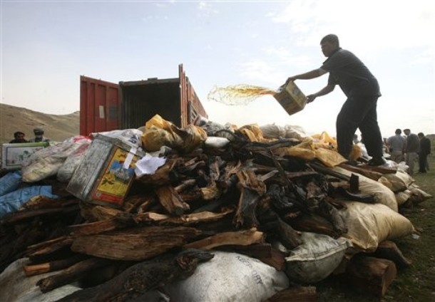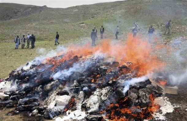 مقامات افغان ادعا می کنند امروز شش و نيم تن مواد مخدر را در اطراف کابل به آتش کشیدند، اما اگر به آتش کشاندن شش و نيم تن مواد مخدر راست باشد و مانند همیشه دروغ و صحنه سازی نباشد، فرزندان غيور افغان در هلمند و.. در حال جبران می باشند و بزودی مواد مخدر با بهترين کيفيت به بازار فرستاده می شود