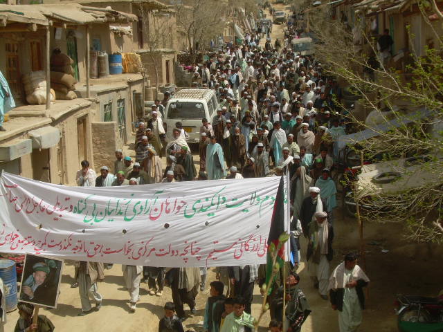 The Hazaras are so peaceful and sivilized people,such demonstration is a clear indication. It is amazing to see that in this part of Afghanistan people use non-voilence means to raise their voces, but in other places people choose sucide, weapon etc. But for how long should the hazaras continue like this, is it not time for some seriouse action? An action that Karzai and other like him can hear? My message to Karzai is: do NOT force people to hate you, try do something that people will love you for that.
