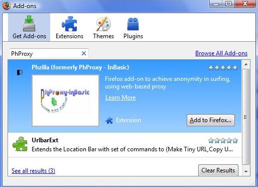 Phzilla (formerly PhProxy - InBasic) برنامه کوچکی ست که شما باید روی مرورگر فاير فاکس نصب کنيد. اين برنامه را انتخاب و روی Add to Firefox کليک کنيد.