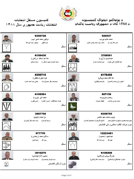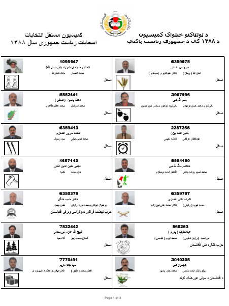 فهرست کامل نامزدهای انتخابات ریاست جمهوری افغانستان در سال 1388