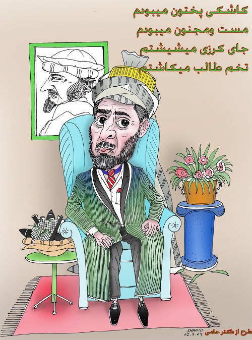 آقای شاهد عزيز ! اين بار طرح کارتون ، شما را گمراه گرده است . شما دچار يک تبليغ مثبت برای عبدالله خان و يک ضد تبليغ به زيان کرزی شده ايد . آيا عبدالله پشتون نيست ؟ عبدالله که در خطابه هايش نه تنها دانشگاه را پوهنتون ميگويد بلکه زايشگاه را زيژنتون (!) می نامد غير پشتون است ؟ وی که لباس پنجابی ميپوشد و به آن افتخار ميکند ، غير پشتون است ؟ دروغ گويی به اين سويه از يک هنرمند بعيد است . با احترام . فرهاد کابلی