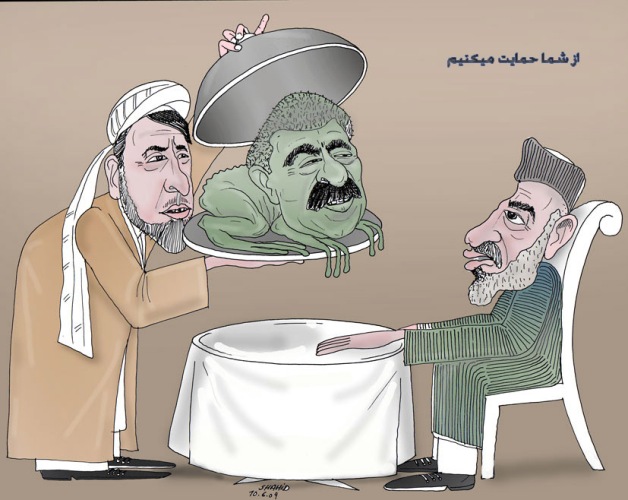 5- شاید باخواندن نکته های بالا به راز حمایت مزدوران معروف ومشهور رژیم آخندی ایران یعنی محقق وخلیلی از کرزی نیزپی برده باشد، این دو آدمک نه رهبرملت شیعه وهزاره اند ونه وارث سمبول مقاومت هزاره ها- رهبرشهید بابه مزاری(ره)- اینها بند و واز منافع مردم مظلوم هزاره نیستند درهشت سال حکومت کرزی ازچهل میلیارد کمک جامعۀ جهانی ومیلیارد ها دالر عوایدفروش ثروتهای طبیعی افغانستان، سهم مردم مظلوم بامیان، کاهگل کردن سرکهای مرکزی شهربوده، در دایکندی هیچ اثری از یک زنده گی شهری دیده نمی شود راههای هزارستان (هزارجات)همچنان خامه ودشوار گذراست ودر اقتصاد منطقه کدام تغییرمثبت نیامده، نه از صنایع خبراست نه از خدمات رفاهی- جنایات کوچیها دربهسود وبامیان که به همه معلوم است. کرزی کسی است که محقق را به خاطر یک کلمه حرف، از کابینه اش مانند یک مگس بیرون انداخت آیا چه تضمین است که این بار یعنی هنگامی که کرزی، آخرین دور ریاستش را می گذراند وامیدی به دور بعدی ریاست جمهوری ندارد، به وعده هایش عمل نماید یا همان برخورد سابق را درمقابل محقق ودوستم وامثال شان تکرار نکند! محقق، خلیلی، دوستم وغیره خوب میدانند که این بارهم کرزی باآنها به شیوۀ بدتر از گذشته رفتار خواهد کرد میدانند که کرزی به مراتب بد قول تر وبی ثبات تر از ملاعمر است همان ملاعمر که بعد از عهد وقولش استاد مزاری را باچنان عذاب وتحقیر به شهادت رسانید وهزاران شیعه وهزاره را قتل عام کرد و گلبدین با بیشرمی وعهد شکنی راه طالبان را از عقب به طرف غرب کابل، حزب وحدت واستاد مزاری باز کرد وجمعه خان همدرد دستیار گلبدین و والی کرزی همین یک سال قبل ازبکها را در شبرغان قتل عام کرد! کرزی همان کورزی(ملاعمر)است با جامۀ دیگر به علاوۀ مداری گری، شعبده بازی، دلقک گری وفریبنده گی.