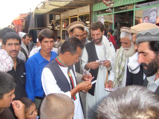 در کابل ، در جلال آباد ، در لغمان ، ولایاتی که تا امروز کمپاین کردیم یک گله مردم از من دارند: "بشردوست صاحب ما پوستر و عکس های دیگران را نمیگیریم اما پوستر های شما را میخواهیم چرا به همه ما نه میدهید. به خصوص پوستر های کلان".
