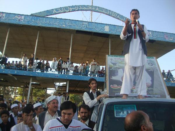 بعد از سخنرانی در پارک، من فکر کردم که کمپاین ریاست جمهوری سخنرانی در پارک شاروالی به پایان رسیده است. اما چنین نبوده بعد از سخنرانی موتر کمپاین ( کرزی کوچ ) در شهر در حال گردش بود که در مقابل دروازه یک سرای متوقف کرد چون اهالی کارت و پوستر تبلغاتی میخواستند. یک جوان از سرای بیرون شد و من را دعوت به نان شب کرد و در ضمن خود را مسؤل شبکه تلویزیونی جهان نما معرفی کرد. قبل از نان شب، کلیپ انتخاباتی من را که بیش از 70 دقیقه است بطور رایگان برای بینینده گان شبکه خود منتشر کرد و بعد از نان شب ( نان و خربوزه ) پیام مستقیم من را در حدود نیم ساعت بطور زنده به بیننده گان شبکه کیبلی خود پخش کرد.