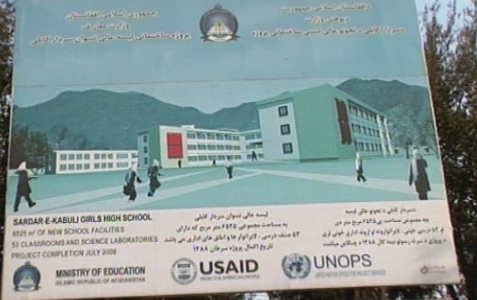 آدرس دنبال می شود. جایی که يک تابلوی بزرگ نصب کرده اند و تصويری زیبا از آنچه قرار است (بود) انجام شود. يو. اس. آی. ای. دی، وزارت معارف افغانستان و یو. ان . او. پی. اس مجری ساخت اين مکتب هستند. حدود سه سال پيش گزارشی از اختلاس يو. ان. او. پی. اس و يک شرکت ايتاليایی در کابل پرس نشر شده بود.