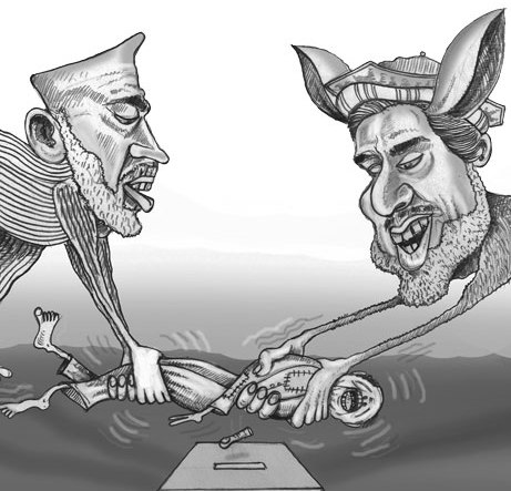 اگر چنانکه معلوم است هرکس بطرف خود بکشد که میکشند بدونیمش خواهند کرد که انوقت نه نصف طرف پایینش بدرد خواهد خورد ونه نصف بالایش اما بهترش این است که یک کمی درحصه ای یکدیگر گذشت نشان دهند اگر درقصه ای ان ضعیفه هستند واگر نیستند بکشند که خدا بکه میدهد .
