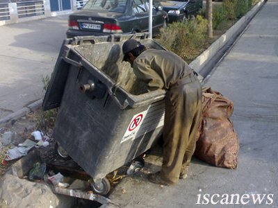 رحیم کمی با اشغالهای داخل سطل ور میرود. چند تا بطری پلاستیکی ومقدار کارتن هم جدا میکند.