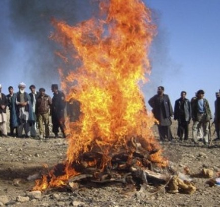 چهار و نیم کیلو از هزاران تُن مواد مخدر افغانستان در خوست به آتش کشیده شد