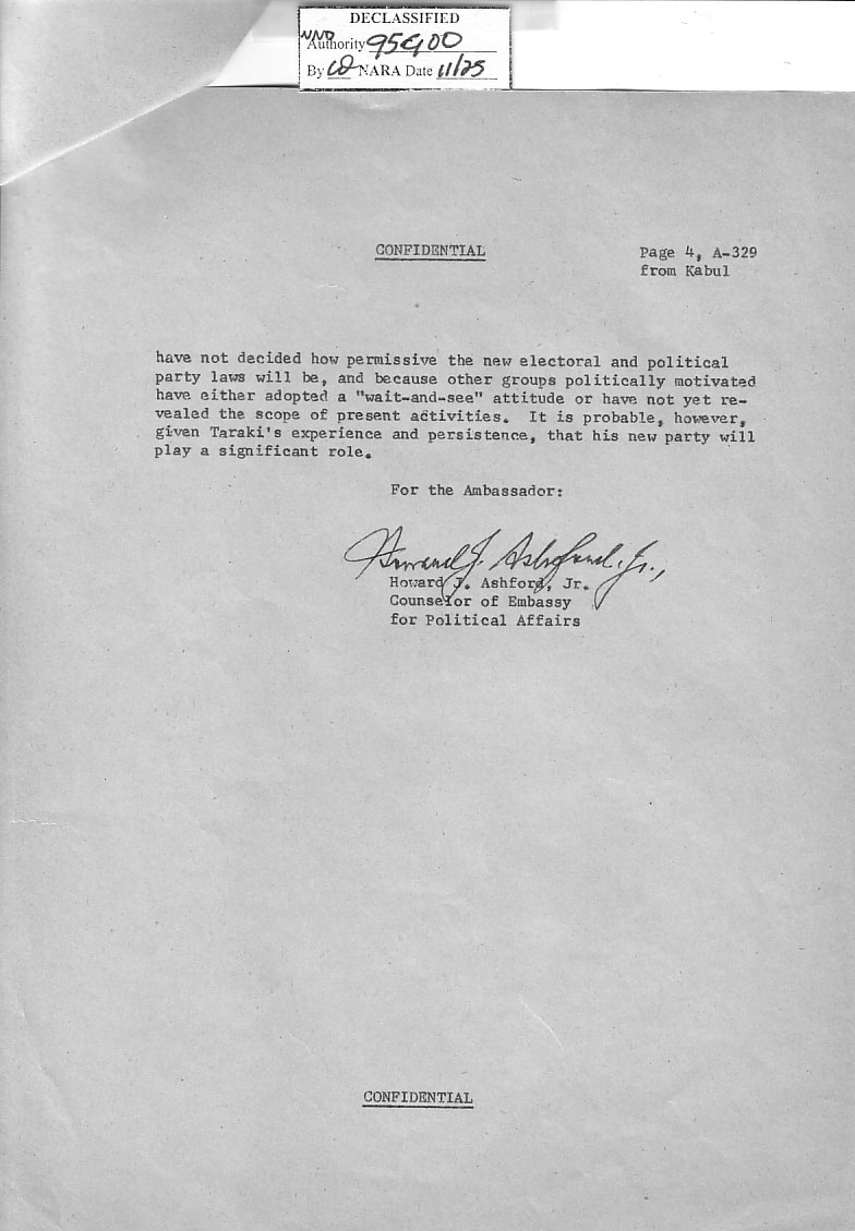 با خواندن این اسناد من شخصاً چنین استنباط کردم که تره کی گویا به حیث یک فرد آگاه از اوضاع کشور به یک امریکایی در رابطه به اوضاع کشور و پایه گذاری یک حزب سیاسی معلومات میدهد.