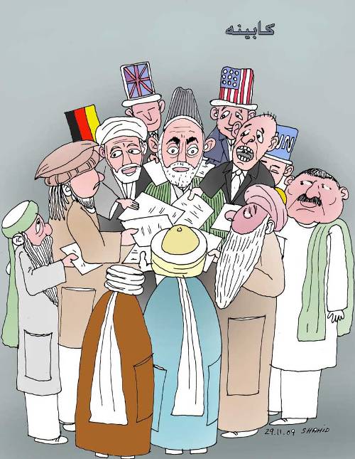 کرزی در حال بررسی معرفی شماری از وزیران اش برای سومین بار به پارلمان می باشد. نمایندگان پارلمان افغانستان دو بار تعداد قابل ملاحظه ی از وزیران پیشنهادی کرزی را رد کردند. این رد صلاحیت شماری از وزیران در حالی می باشد که وزیران معرفی شده در وزارت های کلیدی با آوردن رای کافی اعتماد مجلس را بدست آورده و خدا نکرده "وزیر" شدند. در رابطه با این درام مضحک بسیاری از "روشنفکران" و مردم عادی ابراز نظر کردند. روزنامه های درباری و انجویی افغانستان نیز با بلند کردن مسایل چون قوم و غیره به بررسی مسئله پرداختند. هر یک مسئله ای را نشانه گرفته اند. پیشنهاد های نیز داده شده است تا کابینه فراگیر و ملی شود. اما آنچه از قلم مانده است، ماهیت اصلی رژیم کرزی است.