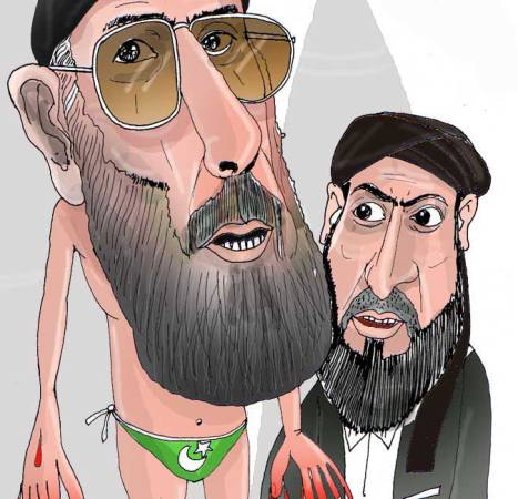 عتیق شاهد ستاره اسلام را به مقابل سر چول حکمت یار صاحب ترسیم نموده است و خود حکمتیار صاحب را مانند زمانه حضرت محمد قداره بدست داده لچ در میان خون ایستاده نموده است . از چهره حکمتیار صاحب معلوم است که ایشان در کشتن هنوز ادامه خواهند داد و با چشمان انتقام جویانه همه شما ها را به جنگ فرا خوانده است . پس این گز و این میدان بفر ماید به جنگ ء امیر اسلامی محمد گلبدین حکمتیار صاحب .