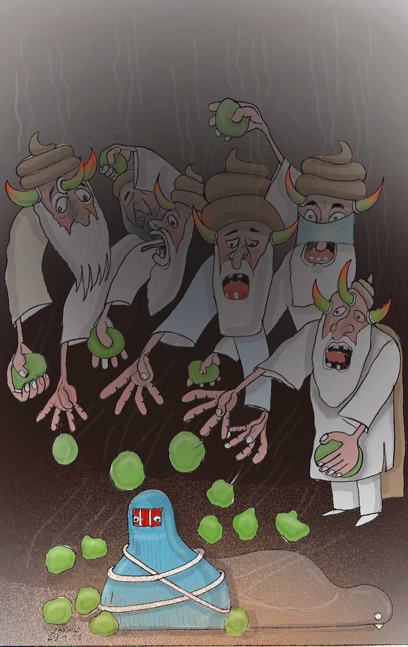 سنگسار قانون من در اوردی طالب ها نیست بلکه در ایه های قران منحیث مجازات اسلامی از طرف خدا تعین شده است . بدین صورت ما هیچ کدام ما نمیتوانیم دشمن طالب باشیم برای اصول دین اسلامی که انها در دوران حکومت خود بر خلق الله , خداند مجبور ساخته بود ایشان را . ولی از جای که رزاق ماماون ثابت ساخته بود که امیرالمونین ملا عمر قاتل مردم افغانستان و غورزی خواخوژی قاتل ریس جمهور پیشین افغانستان هستند و هر دو کارت های سرخ آی اس آی را تا چندی قبل در جیب داشتند و حالا نیز دارند , بدین صورت محاکمه و قصاص باید گردند و وظیفه هر افغان است که عربها را جدا طالبان را چدا برای خوشنودی انسانی سنگسار تا سرحد مرگ نمایند .