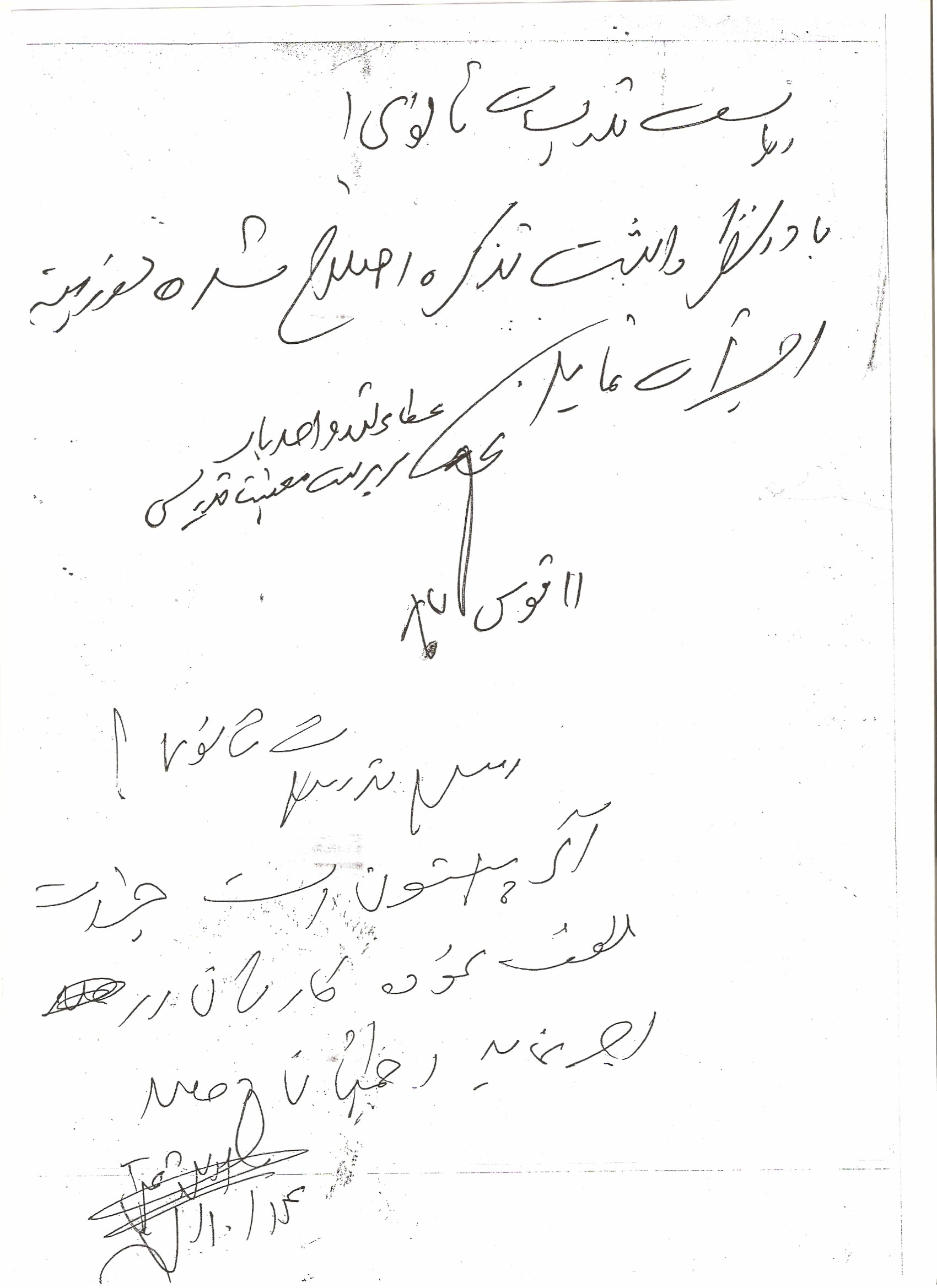 اوبیادرا ! به لیاظ خدا حکم وزیر بخانین ! گیرم که ملاحظه شد ره کورکورکانی قبول کونیم که ملاحظه شد اس ، باقی حکمه ولا که خر هم قبول نمی کنه ! ای بیسواد نوشته کده که : تائیدی کری دانقلاب اسلامی په حکم ! ازبرای خدا ، حکم انقلاب اسلامی اس که دروغ و جعل تائید شوه ! کوجاس حاجی صیب سرپلی که بیایه و از نام اسلام دفاع کنه ، اینی ره میگن چوب زدن ده کون اسلام که مجاهدین فی سبیل الله میزنن !