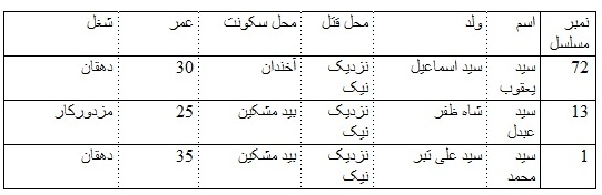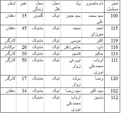 شهرت قربانیان و اسرا از قریه بید مشکین