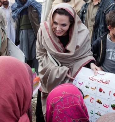 بازیگر شناخته شده سینما خانم آنجلا جولی، به عنوان سفیر حسن نیت سازمان ملل به افغانستان سفر کرده است. او کمک های مالی زیادی تاکنون به پناهجویان در کشورهای مختلف انجام داده است.
