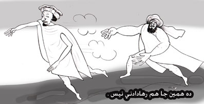hama sharm o lanat ba An Kartoon nawes ki Yak baar Karton Nader Ghadar Aburman jalad wa Azaran Azar khayan wa Watan froshi ki imroz dar kabul ba Naam shan jada ah wa Waat ah wajod dard namekonad.Pass malom dar as ki Aghaye Atiq shaid ham az Jumla e Rofaq hai Samsor awghan wa Qabela Salaran e mangali as.