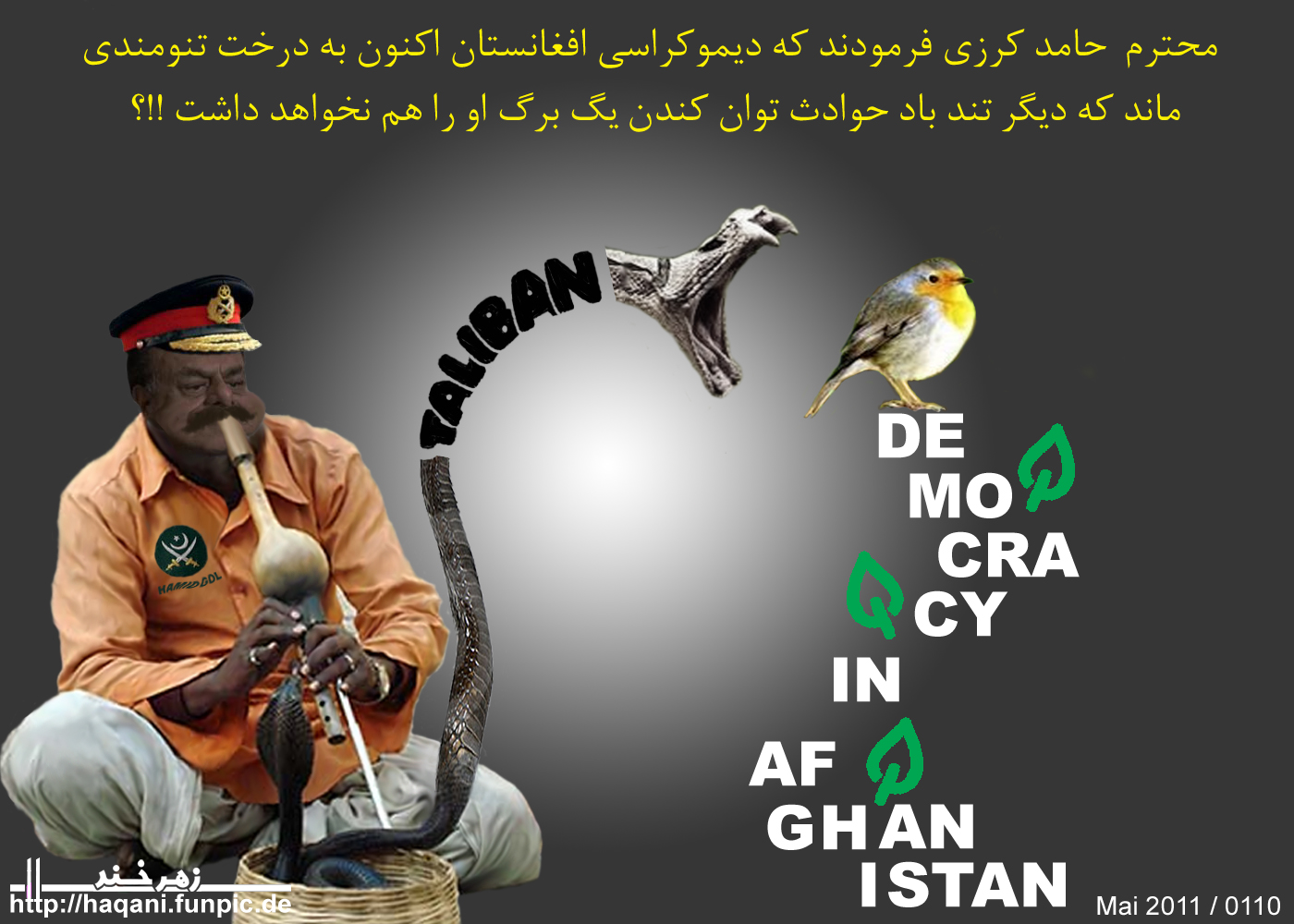 بیچاره کرزی از ده سال به اینطرف به نیت غمخواری و پرورش نهال دیموکراسی از کدام خار مغیلان چه حرف ها و سخن های که نشنید ، هر کس بجای او می بود چپنش را برمیخ بلند آویزان کرده صحنه را ترک میگفت اما ایمان راسخ این راد مرد آهنین عزم او را در تحمل اینقدر رنج و مشقت ها و شنیدن افتراهات و تهمت ها ، اهانت و توهین ها یاری و مددگاری کرد که تا امروز همه را با پیشانی باز تحمل کرده خمی به ابرویش نیاورد .