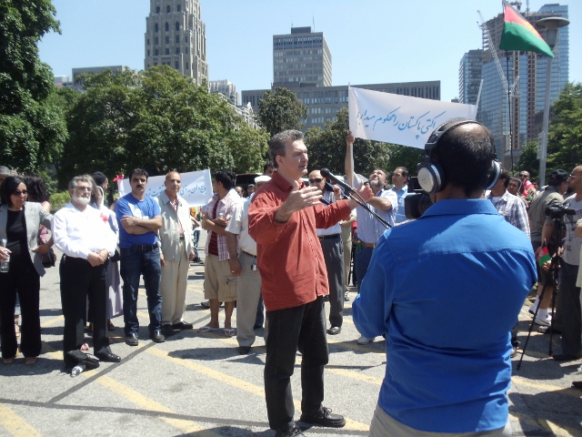 در این تظاهرات تعداد از فرهنگیان فعالان اجتماعی و نمایندگان رسانه های محلی و همچنان یک تن به نمایندگی از پارلمان ایالتی کانادا به سخنرانی پرداختند و پیرامون مداخلات نظامی و سیاسی دولت پاکستان اشارات داشتند.