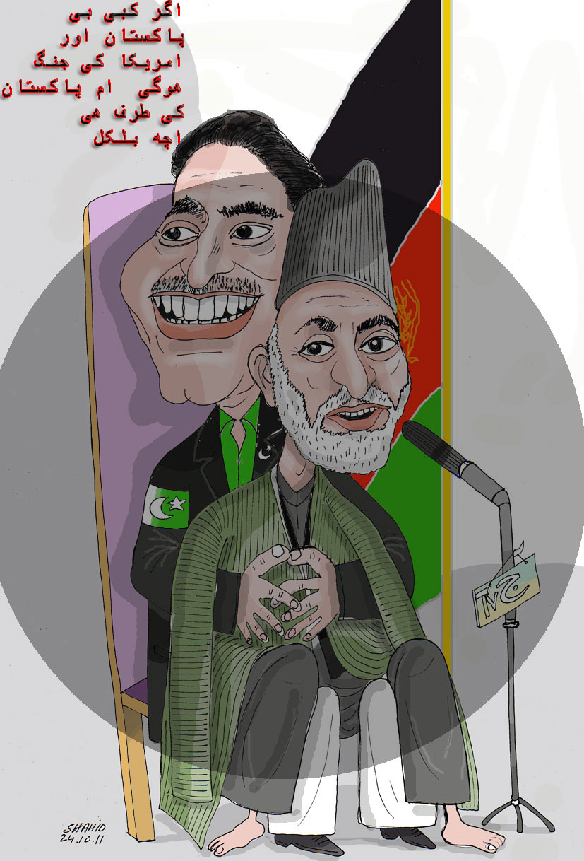 کرزی خان خو تر اوسه پوری حیران پاتی دی او هیحکله نه پوهیژی که پاکستان دوست دی که دشمن. حکه دی ده کرزی ناراضی ورورونه ته اوغانستان لیدلی او بی انتحار کوی،وایی چه پاکستان ورور نه یو دشمن گنل کیژی او همداسی وای چه آمریکا چه په چتلستان ته یرغل کوی،خو خواه مخواه دی(چتلستان) ورور گنل کیژی. مشر ورور هر کله کشر وروور ته حق لری. او کورته ویران شی کرزیه ته نه یوازی او شه ولسمشر نه یی،خو یو بالکل لیوانی سری.