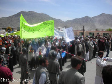 تظاهرات مسالمت امیز و تقاضای کار کارگران رنجدیده را مستائیم. اما با دیدن تصویر سومی سوالی در ذهن هر بیننده ایجاد میشود که آیا کارگران افغانستان کدام نشان، علامه یا بیرق خاص دارند. قراری که مشاهده میشود این راهپیمائی از سوی کسانی راه اندازی شده که علاقه و وابستگی به ایران دارد زیرا رنگ بیرق های که به دسترس کارگران بیخبر قرار داده شده کاملا رنگ بیرق ایران است صرف نشان ان موجود نیست. آرزومندیم که کارگران ما بازیچه دست نوکران ایران قرار نگیرند و هر خائن و نوکر بیگانه از صداقت و صفایی دلهای آنان سوء استفاده نکند. زیرا کم نیست کسانی که برای دلخوشی و برآورده ساختن اهداف غرض آلود حکومت اخوندی ایرانیان کثیف قرار دارند. به امید سرنگونی این وطن فروشان