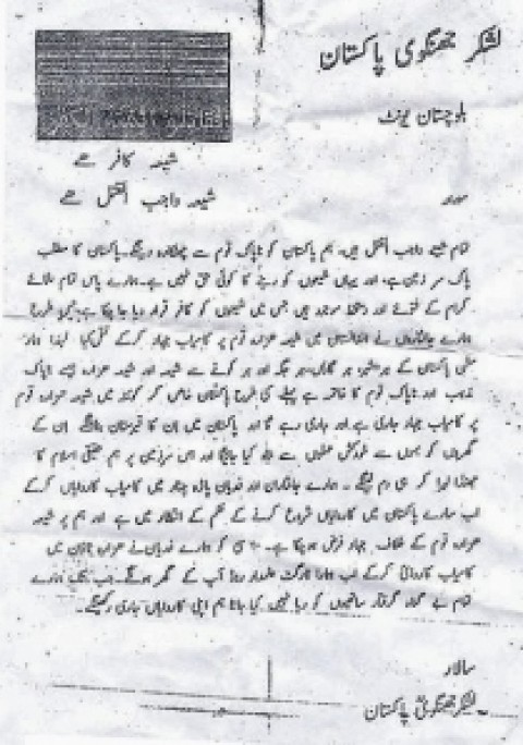 اطلاعیه بالا از گروه تروریستی لشکر جهنگوی پاکستان است که با تروریستان طالب ارتباط مستقیم دارند. در این نامه از واجب القتل بودن و کافر بودن مردم شیعه و بويژه هزاره سخن گفته است.
