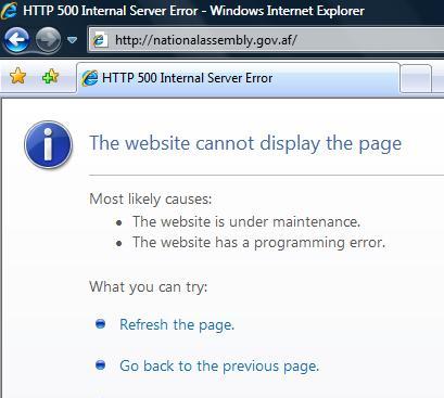 تصور نکنيد که اين خبر با گپ خانم ملالی جويا که پارلمان را طويله خانه خوانده بود ارتباطی دارد. بلکه هيچ ارتباطی ندارد و شما مستقيم می توانيد آدرس نشنال اسمبلی دات گاو دات ای اف را تايپ کرده و متوجه شويد که در روز آغاز بکار پارلمان افغانستان پس از يک دوره تعطيلی، سايت رسمی آن کار نمی کند. شايد هم علت همان چيزی باشد که در کارتون آقای عتيق شاهد رسم شده است.